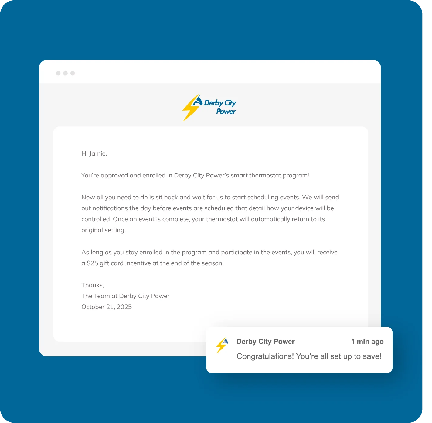 With Relay, utility program managers can use templated messages that can be configured to send based on customer actions like event opt-outs, event participation, and more.